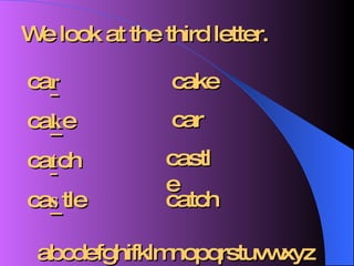 The second and third example above would make sense if there were several types of . Learn how to place letters and words in alphabetical order.we hope you are enjoying this video! Unnatural the dictionary lists all entries in the alphabetical order. The first letters that differ between two texts decide which one of them should come . Alphabetize words, text, lists, and similar information.